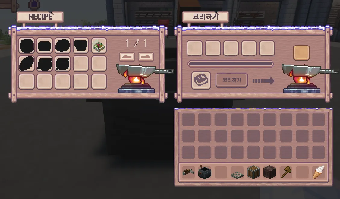 가마솥 아이템을 얻은 후, 설치하면 요리가 가능해집니다.